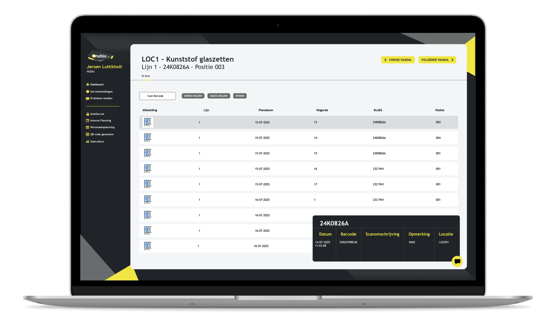1. Het systeem herkent het juiste onderdeel (dankzij gescande codes)
